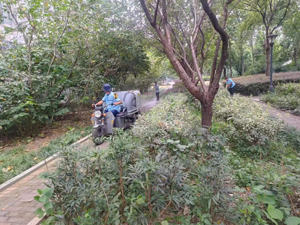 上午、下午的2點半,保潔隊長帶領4名保潔員相互配合,迅速展開青苔的清理工作。鏟的鏟,沖的沖,掃的掃,保潔隊長和一名力氣大的保潔配合,一個開著高壓沖洗車穩(wěn)穩(wěn)前進,一個執(zhí)水管仔細沖地、其他保潔員用鏟刀將沒沖洗干凈的青苔再鏟一遍,最后保潔一起進行路面清掃,把這些頑固的青苔一次性清理干凈。經(jīng)過幾個小時的辛苦工作,大家看著身后被打掃得干干凈凈的道路,都非常開心。通過大家的齊心協(xié)力,默契配合,順利完成了青苔的清理工作,給業(yè)主打掃出一條安全、干凈的道路。
