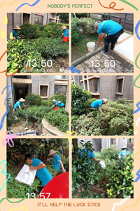 此次活動主要對小區(qū)主要道路、小區(qū)綠化帶里的白色垃圾進行撿拾清掃。大家頂著太陽,穿梭在小區(qū)道路旁、綠化帶周圍,清理著小到煙頭、碎紙屑、落葉,大到衛(wèi)生紙、塑料瓶以及廢紙盒等各類生活垃圾。盡管汗水浸濕了保潔人員的衣服,但是大家發(fā)揚奉獻精神,不怕臟、不怕累,小區(qū)內(nèi)的環(huán)境煥然一新。