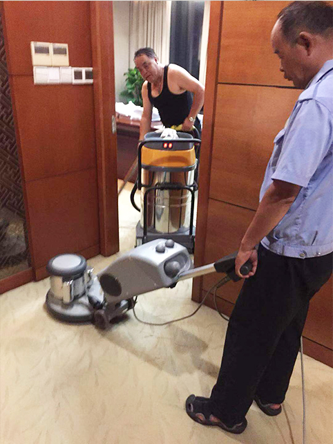 一樹一菩提,一沙一世界,生活的一切原本都是由細節(jié)造成的,而細節(jié)往往最容易被人忽視,殊不知這最不起眼的細節(jié)往往決定了事情的成敗,百分之一的失誤導(dǎo)致了百分百的失敗。水務(wù)大廈管理部本著細節(jié)決定品質(zhì)的管理方針,為了不影響甲方領(lǐng)導(dǎo)正常辦公,管理部決定,8月9日至8月13日將利用四天夜晚時間將八個局領(lǐng)導(dǎo)的辦公室里面的羊毛地毯全部清洗一遍,地毯雖然不是很臟但年數(shù)已久,顏色已泛黃總給人蒙上一層灰的感覺,我們的員工先是用大功率的吸塵器將灰塵或有污染的地方吸塵,再將清潔劑稀釋在地毯上全面噴灑,等待10-15分鐘后,污漬脫離纖維,再用洗地機抽洗,在洗地毯的同時用吸水機吸干凈已經(jīng)洗完的地毯,由于局長辦公室地毯又厚毛絨又多,吸水性又強,所有要有兩個人配合一個清洗一個跟在后面立即吸水,這樣羊毛地毯干的快又重新恢復(fù)了光潔亮麗。這一項零打擾服務(wù)得到了甲方的肯定和贊揚。