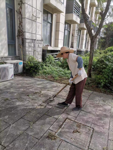 她仔細(xì)觀察著地面,一絲不茍地將紙屑、塑料袋等白色垃圾一一撿拾。她知道,這些垃圾可能是行人隨手丟棄的,也可能是風(fēng)吹落下的,但無論是誰造成的,她都承擔(dān)著清理和維護(hù)環(huán)境的責(zé)任。隨后,她的目光又投向了石板鏈接細(xì)縫處,發(fā)現(xiàn)那里有些討厭的雜草已經(jīng)頑強地生長出來,她知道,這些看似微小的細(xì)節(jié)也能影響到整個場地的整潔度,于是她再次用雙手將這些雜草一一鏟除。