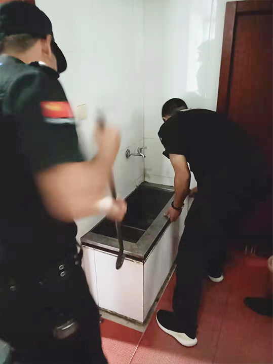 為了能正常使用,保安人員江榮海、蔣國(guó)明、保潔阿姨莊菊妹一起自告奮勇地進(jìn)行疏通,剛開(kāi)始想用鐵絲疏通好的,可下水道像頑皮的孩子似的,一點(diǎn)都不領(lǐng)情,后來(lái)又找來(lái)皮老虎來(lái)回地吸,這次終于有了點(diǎn)效果,臟水終于慢慢地流出了水池。可這也是治標(biāo)不治本的,為了徹底把水池弄通暢,找出源頭,兩位保安大哥又找來(lái)鐵撬,把水池給撬開(kāi),這下終于露出了它的“廬山真面目”。原來(lái)是業(yè)主平時(shí)把喝剩下的茶葉倒在了水池里,日積月累水池下的塑料管道給堵住了。污垢死死地吸附在了水管上才導(dǎo)致的。經(jīng)過(guò)了二個(gè)小時(shí)的奮戰(zhàn),下水管終于又“神采奕奕”地暢通無(wú)阻了,三個(gè)人也喜滋滋地露出了滿(mǎn)意的笑容。