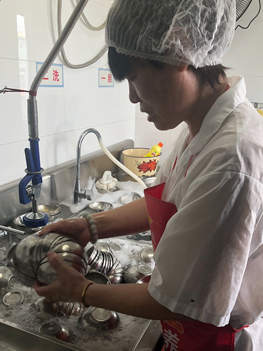 這樣的天氣里誰都想待在室內(nèi)空調(diào)房間里,想想我們食堂一線工作的師傅和阿姨,真是不易?赡苣氵在舒適的空調(diào)房間里享受著夢境,我們的師傅和阿姨穿上工作服帶上工作帽已經(jīng)在溫度高達50多攝氏度的廚房間里,為全天候用餐的人員準備食材加工和烹飪,讓大家能吃上可口的飯菜,這才是早上,中午的氣溫才是溫度最高的時候。我們食堂一線工作的師傅和阿姨,在這樣的工作環(huán)境下依舊配合默契,師傅們菜品進行粗加工到烹飪,阿姨在素菜加工間和洗碗間邊切配菜、洗菜和一起洗碗。他們身上的工作服都濕透啦,但我們的師傅和阿姨們還是在井井有條忙著手上的活,洗碗阿姨在清洗下水池和蒸飯里的水垢時她們臉上的汗珠是順著臉頰往下流,但是手中的清洗工作始終在忙著。