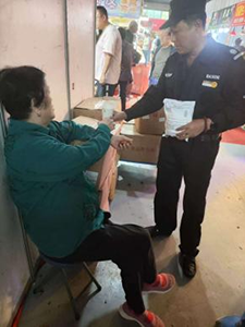 下午2時(shí)左右,正當(dāng)展會(huì)進(jìn)入高潮之際,一位阿姨突然感到頭暈?zāi)垦,臉色蒼白。這一幕恰好被巡邏至此的保安人員張立財(cái)敏銳捕捉。他迅速行動(dòng),第一時(shí)間為阿姨找來椅子,讓她得以安穩(wěn)坐下休息,同時(shí),緊急聯(lián)系展會(huì)現(xiàn)場的醫(yī)護(hù)人員前來援助。