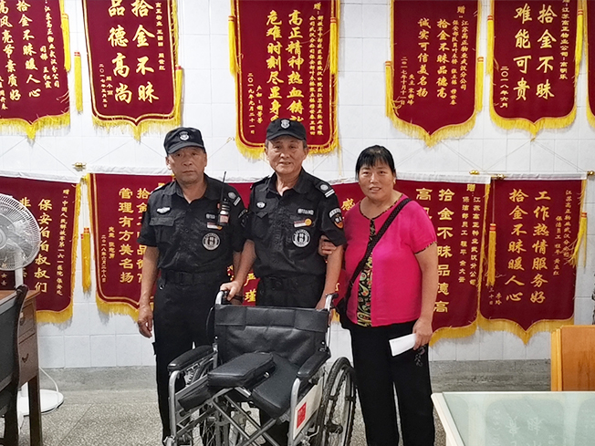 9月4日中午12:00,項目經理梁燕接到了住院部13樓康復理療科的護士長電話,說有病人在做康復理療時丟失一臺價值一千多元的輪椅,要求查看監(jiān)控,詢問如何辦理手續(xù)。項目經理要求樓層保安進行巡邏,查看是否有可疑人員,此時距離輪椅丟失已經過了一個多小時。而上午,我們保安在醫(yī)技樓發(fā)現一部新輪椅,無人問津。滾動班的保安及時向班長葉木橋匯報了這一情況,葉班長意識到可能是病人丟失的,先收起來送到物業(yè)辦公室,并及時向項目經理梁燕匯報了此事。梁經理及時和康復科護士長反饋了這一情況。原來是護工在推病人做理療時,將輪椅遺忘在走道上,被其他做理療的病人推走,還好高正的保安及時發(fā)現并保管了這部新輪椅,護工阿姨為了表示感謝,特地做了一面錦旗,送到了物業(yè)辦公室。