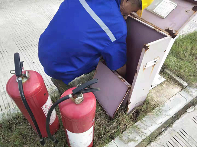 全場(chǎng)地的滅火器將近有百來(lái)個(gè),所以清理起來(lái)工程量也是非常巨大,我們先從科二五個(gè)區(qū)內(nèi)的滅火器、滅火箱擦拭,因有些滅火箱的使用時(shí)間過(guò)長(zhǎng),導(dǎo)致滅火箱上油漆都脫落,擦拭的時(shí)候只能輕輕的,防止其他處的油漆也脫落;有些滅火箱是放在泥土里,箱子的底部的泥土擦拭不掉,只能用鏟子輕輕給它鏟干凈,滅火箱內(nèi)的臟東西也要用鏟子一點(diǎn)點(diǎn)的鏟出來(lái)。滅火器擦拭時(shí)也要非常的小心,擦的時(shí)候不能將滅火器的插銷給弄掉。維保人員在擦拭前都會(huì)對(duì)滅火器進(jìn)行檢查,滅火器壓力表是否有損壞、變形等缺陷;壓力值是否正常(綠色值為工作壓力值);壓把、閥門等金屬件是否有銹蝕;噴管是否有老化、堵塞;如有問(wèn)題,應(yīng)及時(shí)上報(bào)更換。