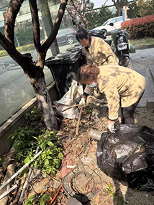 她們身著統(tǒng)一的工作服,戴著口罩和手套,不怕臟、不怕累,認真地撿拾地上的垃圾,將大件雜物搬進垃圾袋,再把細小的垃圾掃入簸箕。經(jīng)過幾個小時的努力,飯?zhí)煤箝T變得干凈整潔,地面露出了原本的面貌,周邊環(huán)境也煥然一新。
