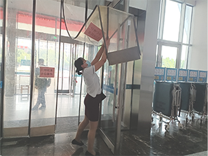 盛夏伊始,空調(diào)開放期間,項目部便分派區(qū)域負(fù)責(zé)人至各部門加強(qiáng)巡查院區(qū)內(nèi)各處有無冷氣外泄,當(dāng)發(fā)現(xiàn)有“外冒”情況時積極干預(yù)處理。門診一樓大廳是重點關(guān)注區(qū)域,大廳空間大,通道門多,電梯員孫紅總是能發(fā)現(xiàn)冷氣外泄的現(xiàn)象,她瘦小的身體拉扯著厚重的門簾一點一點的將門簾拉了下來,冷氣終于不再外冒。