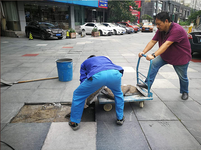 投資廣場的停車場由于車輛反復對道路的碾壓,造成了停車場的地面的破損嚴重。工程部的師傅在不影響車輛進出的情況下百忙之中買了水泥,頂著烈日把破損的路面一點一點的和上水泥,膩子一點點刮平,再找來尺寸大小合適的塑料袋覆蓋在水泥上,為了防止車輛再次對修補的道路碾壓,工程部的師傅們找來鐵板對道板進行覆蓋,妥善保護。師傅們經(jīng)過一下午的施工,對破損的道路一一修復。面對修復的道路和來往的車輛,師傅們臉上露出了笑容。在工程部師傅修復道路的同時,我們的保安隊長立即圍上圍擋拉上警示小紅旗,貼上溫馨告示“地面未干,請勿踩踏,謝謝配合”醒目的告示提醒過往的車輛注意。修好的道路大大的加快車主的通勤速度。為每個來投資廣場的車主提供安全便捷的停車環(huán)境。