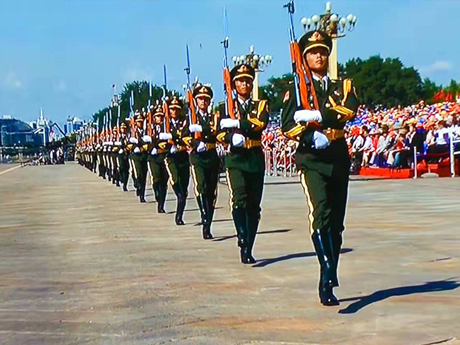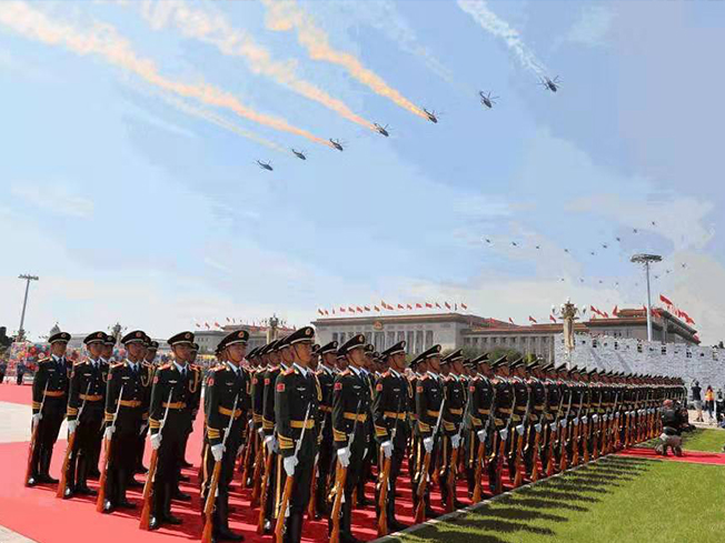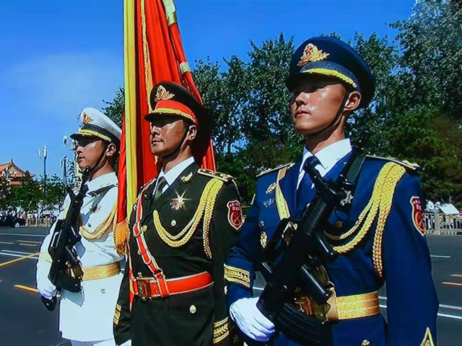 國(guó)旗護(hù)衛(wèi)隊(duì)伴著雄壯的國(guó)歌聲,護(hù)衛(wèi)著鮮艷的五星紅旗冉冉升起,激動(dòng)人心的時(shí)刻隨之而來!黨旗、國(guó)旗、軍旗迎風(fēng)招展。習(xí)主席驅(qū)車來到三面旗幟前停車肅立,向旗幟行注目禮。在肅立行駛的檢閱車中同海陸空三軍問好,同志們好!同志們辛苦了!主席的問候如和煦春風(fēng),溫暖軍心。主席好!為人民服務(wù)!官兵們的回答似驚雷回蕩,山呼海應(yīng),隨后,分列式檢閱開始,三軍儀仗隊(duì)護(hù)衛(wèi)著軍旗率先通過天安門廣場(chǎng),其余15個(gè)徒步方隊(duì)依次接受檢閱,“咚-咚-咚”多么鏗鏘有力的步伐,踢出中國(guó)人民的尊嚴(yán),戰(zhàn)士們一個(gè)個(gè)意氣風(fēng)發(fā),斗氣昂揚(yáng),有種萬人不擋之勢(shì),浩浩蕩蕩,氣勢(shì)恢宏,32個(gè)裝備方隊(duì)以排山倒海之勢(shì)隆隆駛來。展示著我們偉大祖國(guó)的日益強(qiáng)大,看著中國(guó)自主研發(fā)已達(dá)世界先進(jìn)水平的武器,我心中感到無比的驕傲和自豪。有了強(qiáng)的國(guó),才有富的家。就像我們高正集團(tuán)一樣,在優(yōu)秀領(lǐng)導(dǎo)者的領(lǐng)導(dǎo)下,一定會(huì)成為代表世界最高水平的優(yōu)秀企業(yè)。