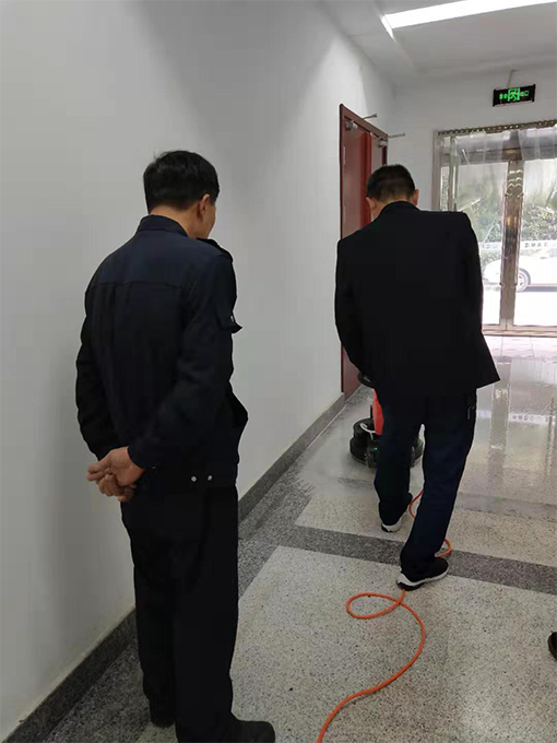 9月下半旬項目主管在日常每周檢查衛(wèi)生以及安全時,發(fā)現(xiàn)五樓會議層電梯門口以及一樓接待大廳的地磚花崗巖石材都有深淺不一的污痕,地面顯得非常臟亂,在使用潔而亮堿水等一系列清潔方式之后都沒有很好的效果。就去跟特種設備安全監(jiān)督檢驗研究院甲方建議是否需要借助外力來恢復地面整潔,結果是需要借助外力,項目部聯(lián)系公司總部派專項技術人員來看了下覺得需要翻新地面,情況匯報甲方后決定自己購買翻新機,2019年10月29日機器藥劑以及人手都準備好的情況下,劉師傅姜師傅開始觀摩公司專項技術人員怎么安裝翻新機并且記錄步驟,從后廚門口開始做翻新地面,更換磨片開始翻新,姜師傅以及劉師傅并且周邊單位過來觀摩現(xiàn)場學習機器使用與注意事項,藥劑的比例, 29日學習了翻新技術,30日上午鄧師傅開始示范拋光地面,要換上別的紅磨片開始新的步驟,劉師傅姜師傅也積極在旁邊記錄以及學習,以方便今后地面的維護保養(yǎng)。這一次我們學習到了地面的翻新打磨拋光以及打蠟,一次維護能夠長時間保持地面的干凈整潔。