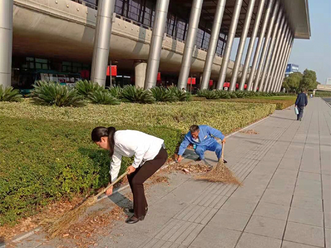 我們的領(lǐng)導了解了情況后,立馬趁著休假趕來,帶著部分員工,擼起袖子就開始清掃這些落葉。他們把藏在花壇里面的落葉一點一點清理了出來,有些地方積的落葉掃帚不太好清理出來,我們領(lǐng)導直接用手將落葉扒了出來。在工作中,不管是我們的領(lǐng)導,還是員工,他們都有著不怕苦、不怕累、不怕臟的精神。大家齊心合力,很快,積得厚厚的落葉就被我們的領(lǐng)導和員工清理完畢。在這個陽光明媚的天氣,涼風習習,領(lǐng)導們卻以汗浸濕了衣衫,他們成了常州機場上最美的一道風景線。