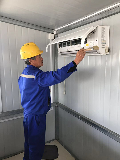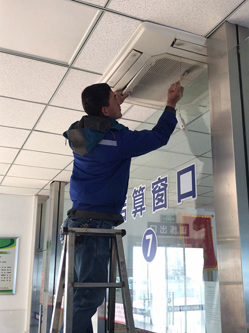 場內(nèi)空調數(shù)量十分之多,有掛壁式、柜式,還有鑲嵌在天花板上的中央空調,清洗的工程量也很大。我們安排了三個維保組工人進行這項工作,一個水電工負責空調試用、記錄及線路檢查;一個負責拆卸空調網(wǎng)片;還有一個負責清洗網(wǎng)片;三個人相互協(xié)做。掛壁式空調比較好處理,只需將空調機殼打開,取出內(nèi)置的兩片過濾網(wǎng),因過濾網(wǎng)不常清洗,網(wǎng)片上沾滿了灰塵,十分的臟,負責清洗的維保工人利用板刷把網(wǎng)片在拖把池內(nèi)進行清洗沖刷干凈,再由拆卸網(wǎng)片的工人進行安裝上去,然后用抹布將空調機擦拭干凈。柜式空調機較為難處理,需將柜式空調機外殼用十字起拆卸下來,取出濾網(wǎng)進行清洗。中央空調機需要登高進行拆卸并擦拭?照{是我們?nèi)粘I钪蟹浅V匾碾娖鳎募局评、冬季制熱,因長時間不使用導致空調灰塵堆積,如果不清洗、不擦拭的話,那再次使用時吹出的風便會對人體產(chǎn)生不好的影響;且因長久不使用空調發(fā)生故障,我們的檢查也能及時的去進行處理,避免影響后期的使用。