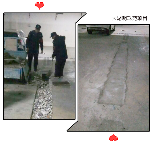 太湖明珠苑西苑車庫內(nèi)路的中間有一條窨井蓋上面由于長期被汽車來回行駛碾壓,井蓋一邊水泥嚴(yán)重破損導(dǎo)致井蓋往下沉,存在安全隱患,經(jīng)物業(yè)討論決定11月20號開始對西苑車庫內(nèi)的井蓋進行修整。