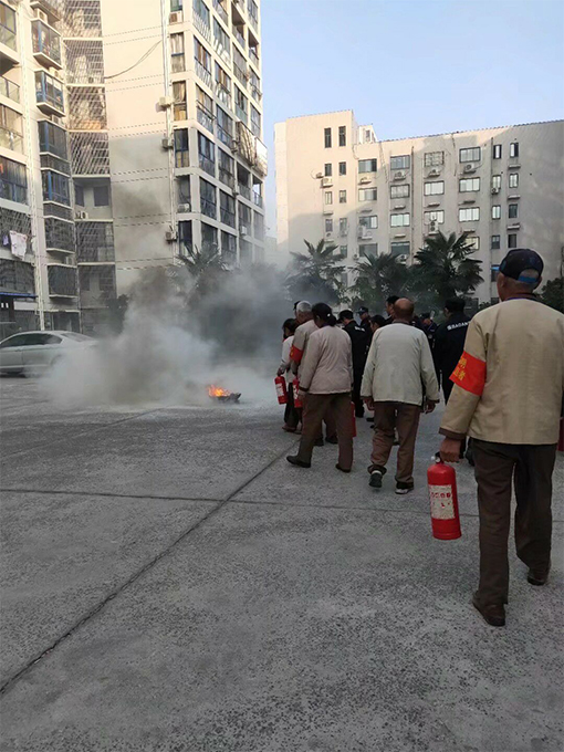 下午兩點,在保安主管周軍偉的指揮下,消防演習有條不紊的進行著,首先,周隊先對全體人員進行消防常識的普及,告訴我們火災逃生方法,家庭火災逃生自救方法,如何使用滅火器以及怎么使用滅火工具來控制火情,還有發(fā)生火情及時撥打火警電話119這些常識。