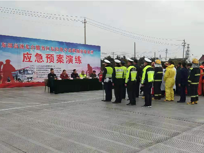 為積極貫徹江蘇省交通控股公司開(kāi)展高速服務(wù)區(qū)“應(yīng)急預(yù)案演練月”活動(dòng)的相關(guān)要求,進(jìn)一步規(guī)范服務(wù)區(qū)應(yīng)急預(yù)案管理體系,提升服務(wù)區(qū)對(duì)突發(fā)事件應(yīng)急處置能力,11月26日,東臺(tái)服務(wù)區(qū)聯(lián)合鹽通管理處、派出所、交警、路政、消防隊(duì)、高速清障隊(duì)、東臺(tái)人民醫(yī)院及服務(wù)區(qū)各承租方等單位在東臺(tái)服務(wù)區(qū)共同舉辦了“危險(xiǎn)化學(xué)品泄露事故應(yīng)急預(yù)案演練活動(dòng)”。東部高速副總經(jīng)理吳海翔、各部門(mén)管理處相關(guān)負(fù)責(zé)人以及東部高速全線各服務(wù)區(qū)管理人員、各物業(yè)公司負(fù)責(zé)人、全線物業(yè)公司部分保安參加了觀摩。