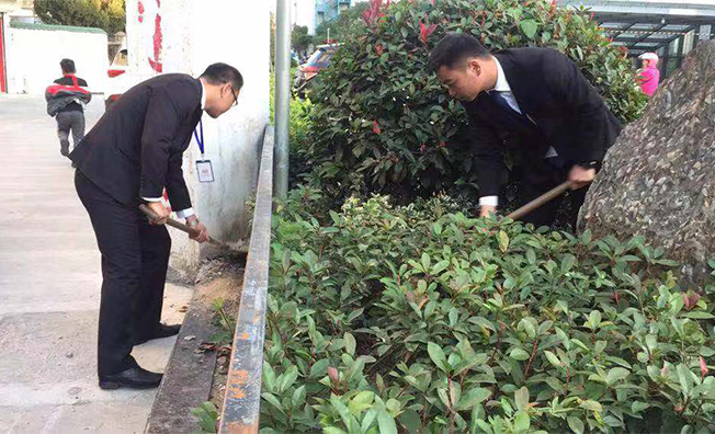 “好醫(yī)館”醫(yī)療事業(yè)部啟東人民醫(yī)院項目部:11月25日下午3點左右,接到醫(yī)院總務(wù)科電話說,在醫(yī)院西側(cè)的外花壇邊上有前段時間因修路而遺留下來的建筑垃圾需要清理,由于當天的機動人員另有工作任務(wù),抽不出人員去清理,于是項目主管和項目經(jīng)理決定親自把花壇里的建筑垃圾清理掉。我們向建設(shè)隊借了輛翻斗車、鐵鍬等工具先把建筑垃圾鏟掉,而有些零散的磚塊和水泥塊只能用手去撿,最后車上都堆滿了建筑垃圾。過往的醫(yī)護人員對我們投來了贊許的目光。最后分成兩隊人處理這個建筑垃圾,一個人推車滿車的建筑垃圾倒在了指定的垃圾區(qū)域,另外再讓外場阿姨撿余下的碎磚塊和一些瓜果皮。