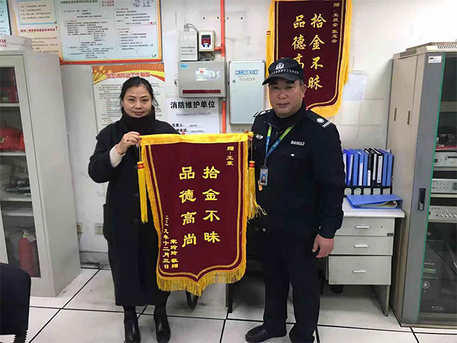 2019年12月29日下午,移動(dòng)項(xiàng)目管理處收到顧客送來(lái)的錦旗,原來(lái)是安保部保安王震在二樓營(yíng)業(yè)廳巡邏時(shí)撿到一位顧客的手包,并歸還。顧客為感謝管理處員工的拾金不昧的精神,特地制作錦旗。