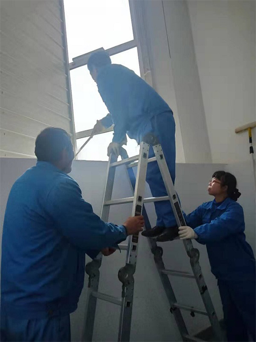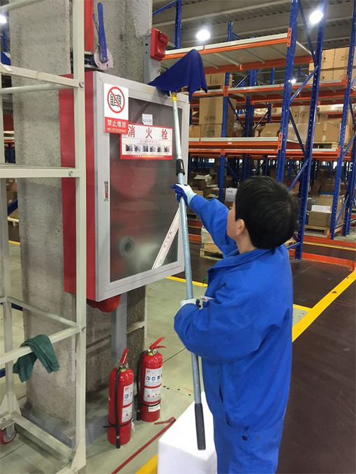 從車間樓梯高層拐角的打掃到樓梯假草坪的清洗,從垃圾桶的清洗到各車間屋檐的沖洗;從撣撈南門雨棚內(nèi)灰塵、蜘蛛網(wǎng)到溝渠垃圾的打撈,各車間各區(qū)域責(zé)任到人,默契配合按照計劃有序的清理打掃。專項(xiàng)人員每天計劃性的刮洗6個車間內(nèi)外窗戶玻璃,利用休息日清洗玻璃屋檐;管理人員巡查各車間出貨空置的區(qū)域進(jìn)行有序清洗,為車間后期放置設(shè)備做好環(huán)境衛(wèi)生。