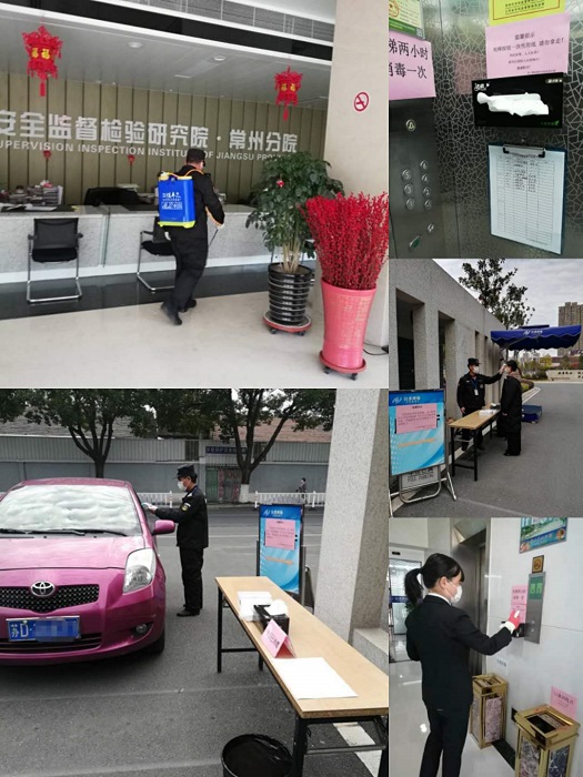 特檢院全體物業(yè)人員在甲方人員上班前已經(jīng)提前到崗,對(duì)園區(qū)進(jìn)行打掃、消毒,大門(mén)口張貼溫馨提示。并在門(mén)崗設(shè)置了消毒臺(tái)桌和體溫槍?zhuān)恳粋(gè)進(jìn)入園區(qū)的人員都要測(cè)量體溫,體溫正常方可登記入內(nèi)。當(dāng)工作人員進(jìn)入電梯,會(huì)有更大的發(fā)現(xiàn),每個(gè)電梯里面和外面都有一盒餐巾紙和溫馨提示,以及兩小時(shí)消毒一次臺(tái)賬, 能夠明確消毒時(shí)間,消除了業(yè)主和用戶(hù)的焦慮感。大樓主要入口我們專(zhuān)門(mén)鋪設(shè)了消毒毯,讓每一位進(jìn)入大樓的員工都能在消毒毯上走過(guò)。
