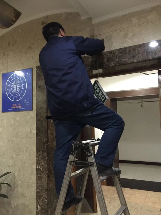 企業(yè)復(fù)工后,上班人員的增多,電梯聲也此起彼伏,投資廣場的員工又要開始一天忙碌的工作了。“叮咚”就看見電梯停在了大樓的8層,隨著電梯門打開,就看見一個熟悉的身影,那不是投資廣場項目工程部的戴師傅嘛?只見戴師傅騎跨在撐梯上,手里拿著維修的工具在比劃者什么,走近一看原來戴師傅在維修8樓走廊上的安全出口的指示牌。在簡單打過招呼以后戴師傅笑嘻嘻的說:“早上來巡查的時候發(fā)現(xiàn)指示牌的電線裸露在外,非常危險。”他一邊輕聲的說著,一邊手里的絕緣膠布上下飛舞著。不一會兒,裸露的電線就在戴師傅的手里乖乖的裹進了膠布里。戴師傅又拿螺絲刀把指示牌緊緊地按在了出口的墻面上。就在戴師傅按下電源開關(guān)的一瞬間,燈亮了,他笑了。投資廣場項目工程部的戴師傅天天多早早的上班,一到大樓第一件事就是巡查各樓層看看有沒有不好的地方,及時發(fā)現(xiàn),及時解決。他天天保護者大樓業(yè)主的安全。讓業(yè)主有著賓至如歸的感覺。