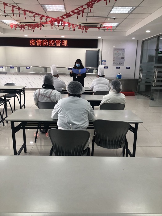 3月12日,移動(dòng)項(xiàng)目管理處主管針對(duì)食堂開展疫情防控管理培訓(xùn)。在采購(gòu)方面,供應(yīng)商的食品原料配送人員每天測(cè)體溫并向本食堂報(bào)備,供貨商和接貨員在交接工作中均需佩戴口罩。食品加工方面,要求加工食品燒熟煮透,食品中心溫度應(yīng)達(dá)到70攝氏度以上。疫情期間禁止生冷、冷葷、涼菜、涼面、糕點(diǎn)的制作和銷售。在供餐管理方面,廚房工作人員使用經(jīng)消毒的專用工具并佩戴口罩、手套,減少語言交流,人與人之間保持1米以上安全距離。工作服應(yīng)該每天更換、洗滌并進(jìn)行高溫消毒。消毒保潔上,實(shí)行分層,分區(qū)域,分項(xiàng)目實(shí)施網(wǎng)絡(luò)化管理,詳細(xì)記錄消毒保潔的時(shí)間、次數(shù)、消毒人、負(fù)責(zé)人、檢查員等信息,無死角對(duì)環(huán)境衛(wèi)生整治和消毒。