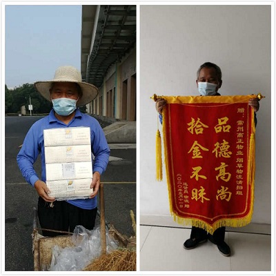 當(dāng)他正在低頭認(rèn)真的清掃外圍垃圾時,發(fā)現(xiàn)地上有一沓香煙,共四條黃金葉,包紀(jì)明立即打電話給保潔班長,保潔班長在上報項目主管的同時,項目主管及時聯(lián)系甲方相關(guān)工作人員,并把香煙交于辦公室。當(dāng)天,甲方辦公室領(lǐng)導(dǎo)聯(lián)系到了相關(guān)工作人員,是一位負(fù)責(zé)當(dāng)天輸送香煙的送貨員丟失的,當(dāng)他拿到丟失的香煙時,激動地對我們的保潔員說:“謝謝你們,真是太感謝了!”若賠償損失需要大半個月工資,全家的生活費就沒有了,說著說著他激動地眼淚都要流出來了。第二天這位送貨員就送來了一面錦旗,上面寫著“拾金不昧,品德高尚”八個字,他真誠地感謝高正集團(tuán)煙草物流清掃組,并且還當(dāng)面感謝我們的保潔員。