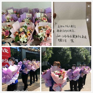 5月12日,國際護(hù)士節(jié)到了,高正集團(tuán)武漢161醫(yī)院項(xiàng)目部的項(xiàng)目管理人員一大早就來到醫(yī)院,忙著為中部戰(zhàn)區(qū)總醫(yī)院漢口院區(qū)各科室的護(hù)士們準(zhǔn)備一束束美麗的鮮花,給她們送上節(jié)日的祝福,祝她們節(jié)日快樂,向所有的白衣天使致敬!收到漂亮的鮮花,穿著厚厚防護(hù)服的護(hù)士姐姐們都開心的笑了。