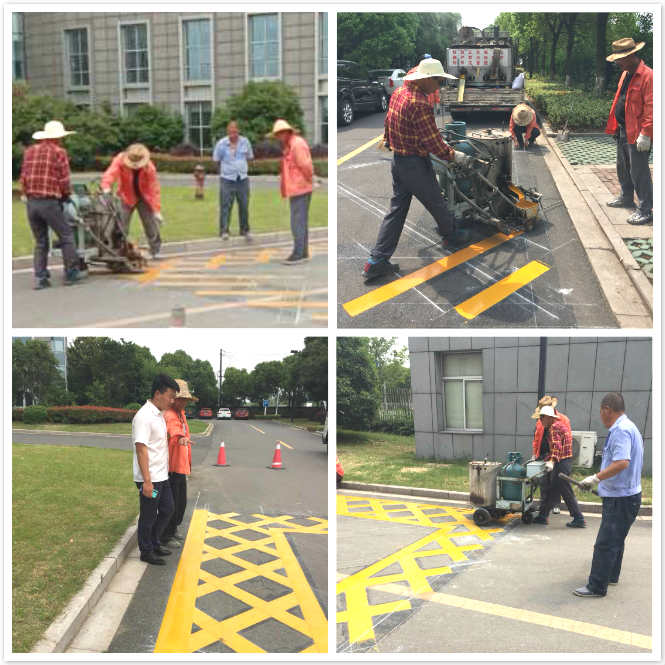 當(dāng)天早上八點(diǎn)半左右,天氣晴朗、微風(fēng)徐徐,項(xiàng)目經(jīng)理帶著幾位師傅還有我們的保安開始他們的工作。他們先把地面劃好樣板線,然后用機(jī)器在上面一點(diǎn)一點(diǎn)的畫黃色禁停線,來來回回的,看著他們認(rèn)真工作的樣子,不禁給他們點(diǎn)個(gè)贊。經(jīng)過一天的辛苦工作,項(xiàng)目部的兩處消防通道禁停線完美收工。