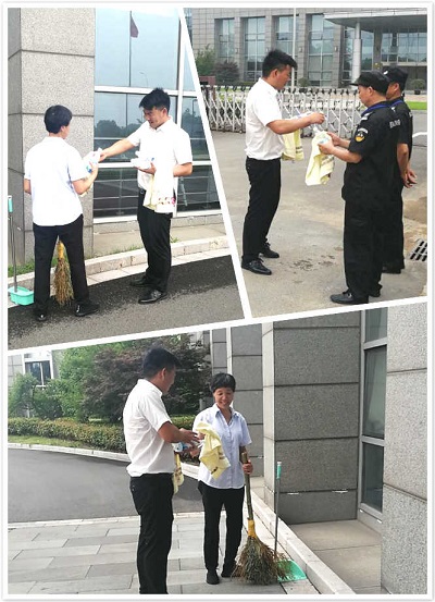 2020年6月11日上午9點(diǎn),與往年一樣,每到大夏天,高正集團(tuán)就記掛著奮戰(zhàn)在高溫酷暑一線工作的物業(yè)員工們。公路事業(yè)發(fā)展中心項(xiàng)目部經(jīng)理丁東威,一大早就給員工們送來(lái)了清涼,發(fā)放鹽汽水、風(fēng)油精、藿香正氣水、毛巾、人丹等夏令用品。