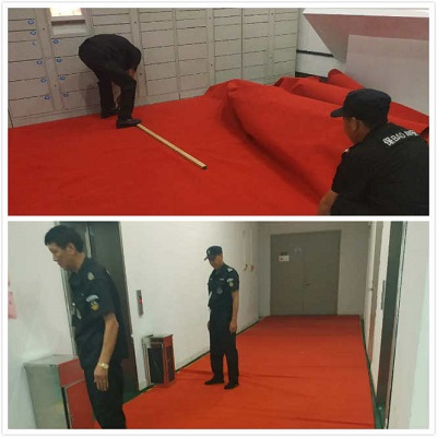 看到這個(gè)情形,高正集團(tuán)水務(wù)大廈項(xiàng)目部管理人員立即繃起了緊張的玄,防汛任務(wù)就在眼前,地下車庫(kù)絕不能出現(xiàn)水漫金山的現(xiàn)象。管理部立即排查地下車庫(kù)南北出入口處的水坑下水是否流暢,是否有積水。經(jīng)過仔細(xì)查看,由于水務(wù)的設(shè)施還是比較完善的,基本沒有造成下水不暢的問題,但是地下庫(kù)的油漆地面返潮造成路面打滑,對(duì)行人造成安全隱患。于是管理員們立即找來(lái)地毯,量好電梯通道的尺寸,把地下庫(kù)的電梯通道用紅色地毯全部鋪好,這樣就大大的降低了甲方上班人員路滑摔倒的危險(xiǎn)系數(shù),火紅的地毯不僅美觀而且安全。