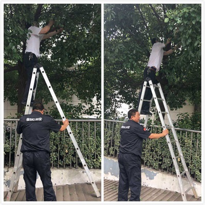 6月23日上午,保安隊長王宏臣對項目進行排查,當(dāng)檢查到地下車庫時,發(fā)現(xiàn)地下車庫口的樹枝太長,他立即拿起梯子和鋸齒,對樹木進行修剪。這原本不屬于我們物業(yè)的本職工作,但為了規(guī)避風(fēng)險,確保甲方工作人員安全停車,我們的安保人員主動將樹木超長、臨近電線的枝干進行修剪,并且還對坡道綠化棄料進行了清理,在修剪和清理的過程中,甲方領(lǐng)導(dǎo)包括隔壁商戶,都豎起大拇指稱贊我們的物業(yè)工作人員。