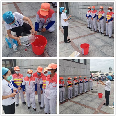 此次特邀醫(yī)院專業(yè)人員對員工從防護著裝、手部衛(wèi)生、消毒藥劑配兌、廢物管理、醫(yī)院感染知識等內容進行了詳細的講解,進一步增強保潔員工的防范意識,使操作流程更加職業(yè)化、規(guī)范化、標準化。