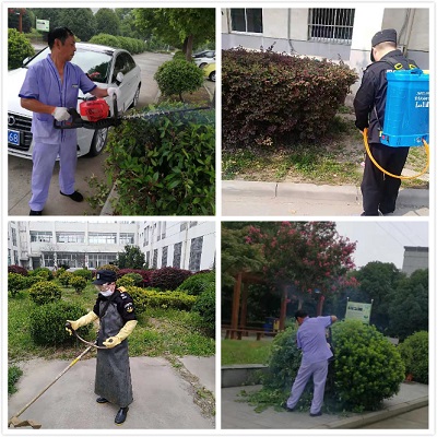 首先項目部集中人力并結合藥物治理,對綠地內的雜草進行了全面清理,確保樹木生長旺盛和醫(yī)院綠化的整體效果,其次對樹木進行了科學修剪整形,對綠地樹木實施全面修剪,修去病蟲枝、過密枝、枯死枝、下垂枝等,保持樹形優(yōu)美,并將綠植修剪造型,草坪推剪整齊,確保植物的正常生長以及較好的景觀效果,最后分類噴灑藥水,集中力量對草坪、樹木、綠地等進行病蟲害防治工作,有效的控制病蟲害的蔓延。