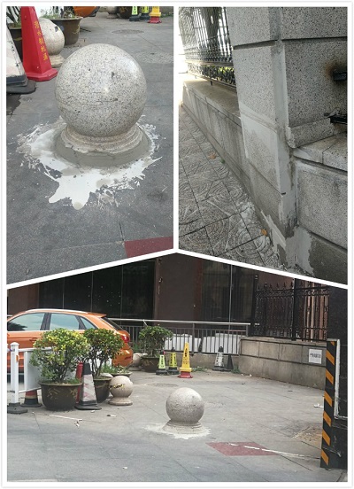 高正集團(tuán)投資廣場項(xiàng)目部在發(fā)現(xiàn)這一不文明行為之后,立即安排工程部師傅將石球固定起來,既確保了輔樓地下室入口處的規(guī)范停車,也阻止了那些隨意亂停車的不文明行為。工程部師傅們還發(fā)現(xiàn)廣場圍欄外墻的石材有些剝落了,就利用剩余的水泥,將石材修補(bǔ)固定住。