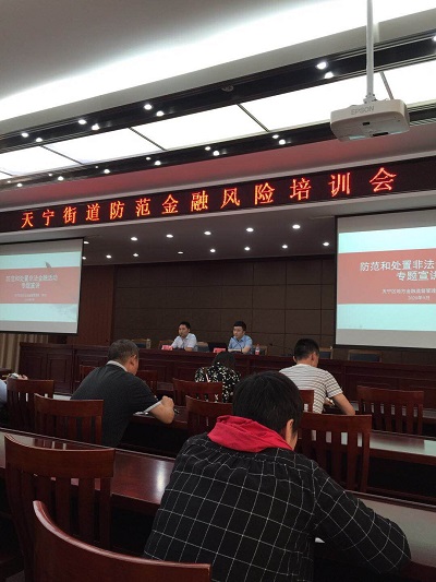 近期投資廣場(chǎng)應(yīng)天寧街道邀請(qǐng)參加“天寧街道防范金融風(fēng)險(xiǎn)培訓(xùn)會(huì)”,參加培訓(xùn)會(huì)的有各社區(qū)(村)書記、經(jīng)濟(jì)專員以及天寧轄區(qū)內(nèi)所有商務(wù)樓宇的物業(yè)管理人員。