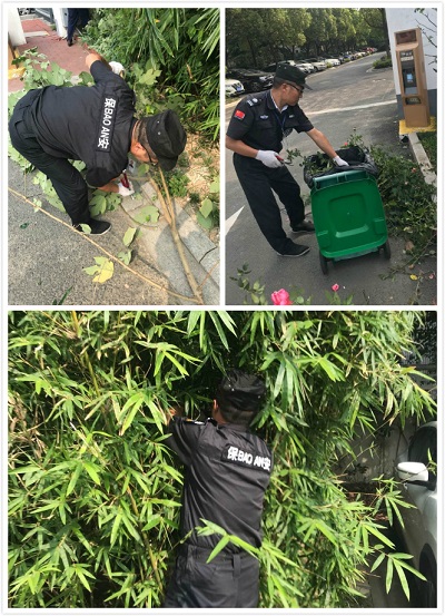 水務(wù)大廈外圍的綠化樹(shù)木已經(jīng)從原來(lái)的小樹(shù)苗長(zhǎng)成參天大樹(shù),背面停車(chē)場(chǎng)通道上,有的樹(shù)枝已經(jīng)延伸到路當(dāng)中,擋住了路人的行走視線(xiàn),有的長(zhǎng)得高超過(guò)了電線(xiàn)桿、遮住了路燈,使得路燈在晚上照明亮度有限。為了更好的服務(wù)于甲方,讓每一個(gè)人都身在一個(gè)干凈明亮舒適的環(huán)境中工作生活,項(xiàng)目部員工自己找來(lái)工具,準(zhǔn)備對(duì)過(guò)于茂盛的樹(shù)枝進(jìn)行修剪。路邊帶刺的月季花的枝葉長(zhǎng)到了路當(dāng)中,就戴上手套把它修剪掉,長(zhǎng)得太高的枝葉用鐮刀割下,讓路燈露出了頭。不一會(huì)會(huì)就修剪出一大堆樹(shù)枝,為了更好的方便垃圾清運(yùn),把工作做到細(xì)致,員工們又用剪刀把樹(shù)枝剪成一段一段,用垃圾袋裝好堆放到固定點(diǎn)。