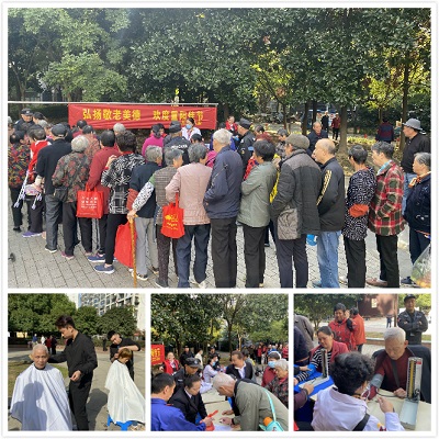 經(jīng)過精心布置,活動現(xiàn)場洋溢著濃濃的節(jié)日氛圍,不到八點廣場就已聚集了很多老年業(yè)主。此次活動為老年人提供了免費的口腔義診、血壓測量、理發(fā)、派送重陽糕等活動,現(xiàn)場的老年朋友們也都有序地排起了長隊等候。對于小區(qū)內(nèi)的孤寡及高齡老人,服務中心更是貼心組織人員進行了上門慰問,并送上了重陽糕。